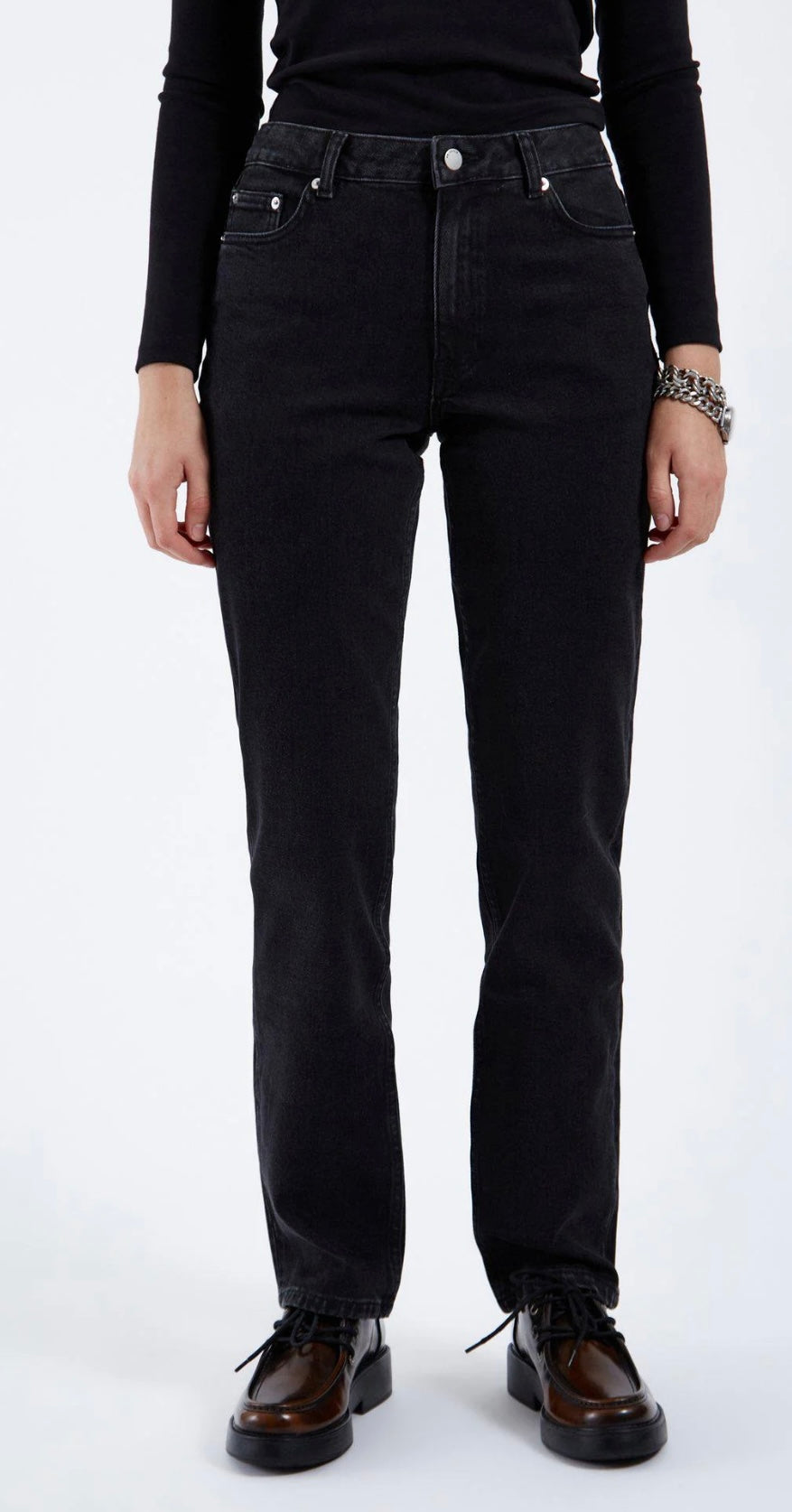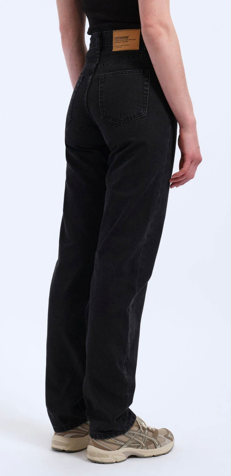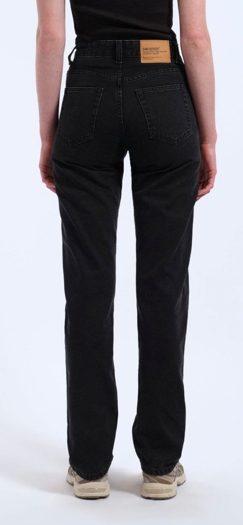 Jeans neri da donna a vita alta con taglio dritto e vestibilità comoda. Un capo versatile e moderno, perfetto per outfit casual o urban chic.
