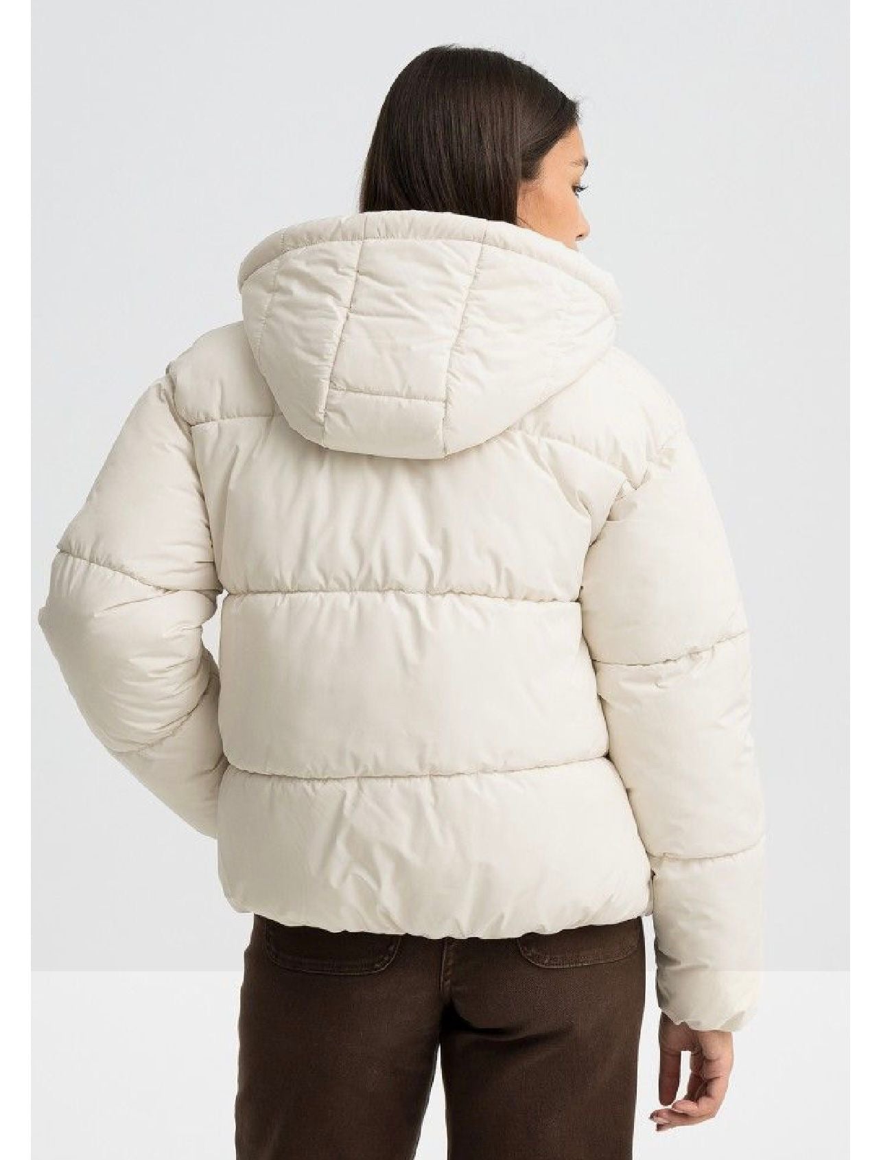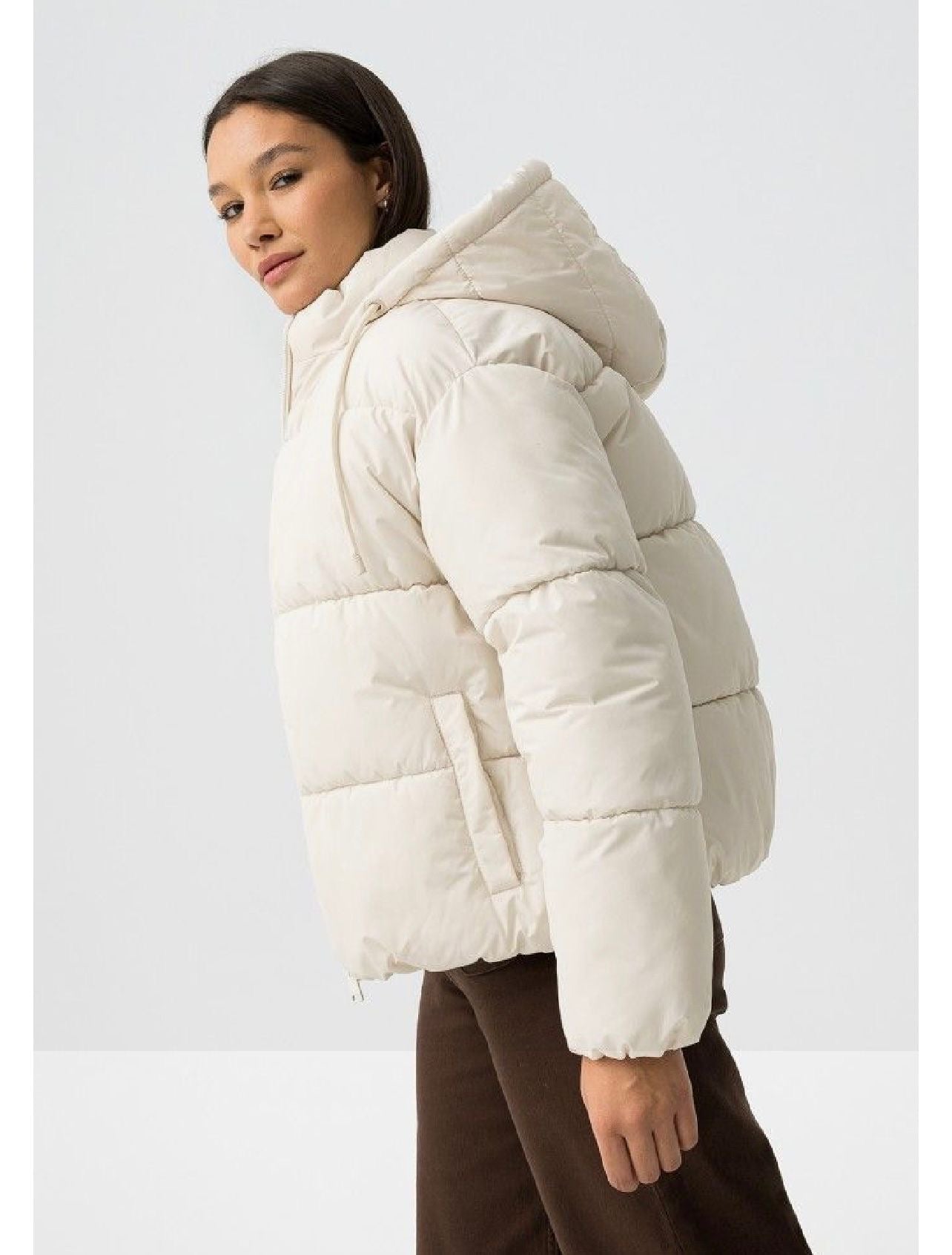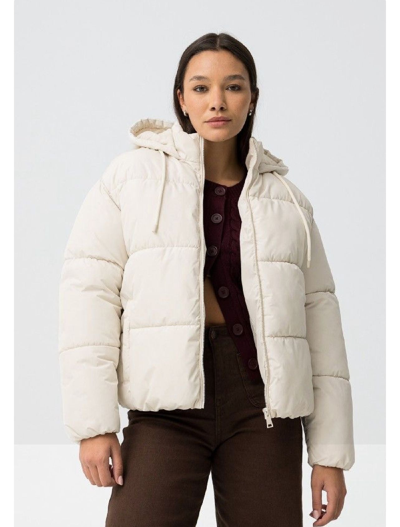 Piumino corto beige da donna con cappuccio – giubbotto invernale imbottito caldo e leggero